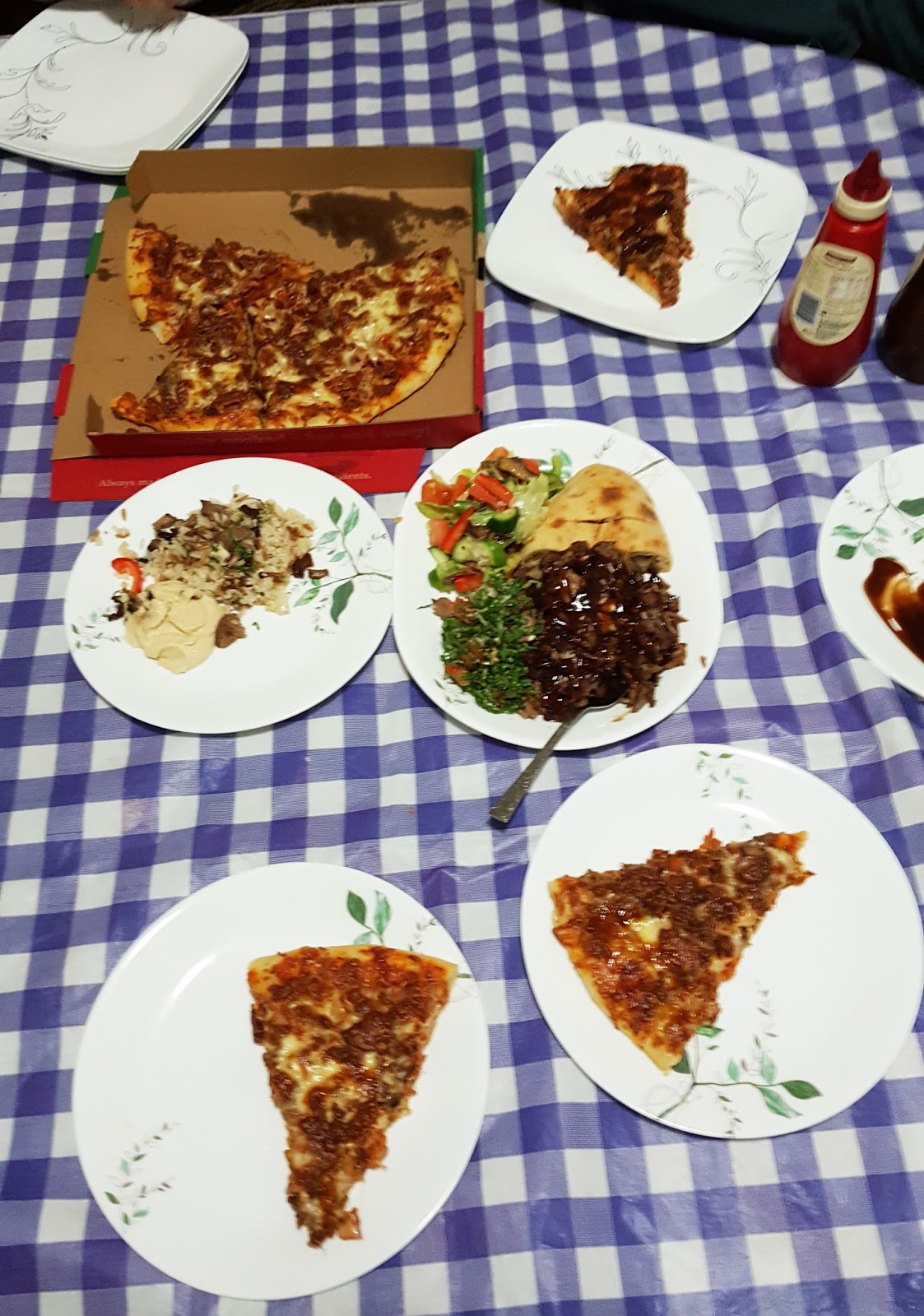 Balik kerja Izraq beli pizza dengan kebab arab. Besar bapak pizza die. Portion kat sini memang besar..